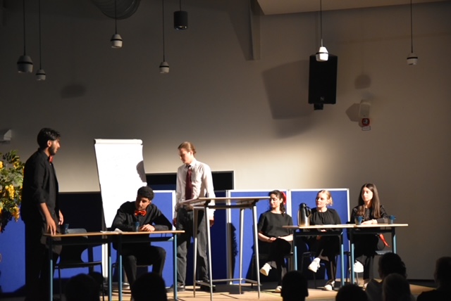Kurz vor Beginn der langersehnten Sommerferien führte der S2 Theaterkurs von Herrn Junker eine Eigenproduktion vor: Die Adaption von Shirley Jackson’s Kurzgeschichte „The Lotterie“. Die Geschichte wirft die Frage auf, warum Menschen in der Lage sind, grausame Taten zu begehen und wie sie durch blinden Gehorsam und gezielte Manipulation in ihrem Handeln beeinflusst werden. Das Stück wurde vom Kurs gemeinsam nach und nach entwickelt. Am Ende konnte die Gruppe dann das Stück im Forum präsentieren und ihr schauspielerisches Talent unter Beweis stellen.