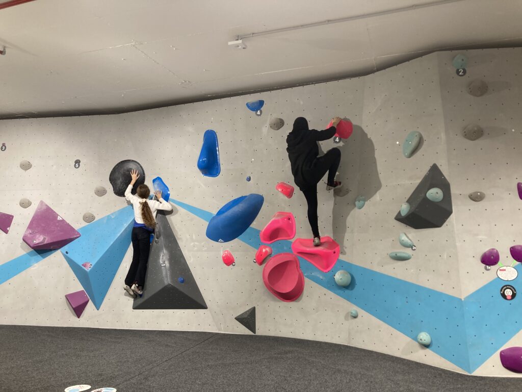 Bouldern ist eine spezielle Disziplin des Sportkletterns. Dabei kletterten die Schülerinnen ohne Seil in Absprunghöhe an unterschiedlich schwierigen Routen. Schnell zeigte sich, dass nicht nur Kraft, sondern auch Technik, Mut und gegenseitige Unterstützung gefragt sind.